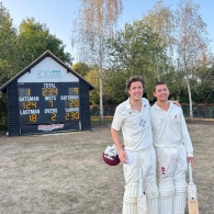 Sam Pougatch immediately set about the target putting on 60 odd at great speed. Someone must have drugged (our) umpire at drinks as he then proceeded to give two absolute shockers against Felix Tritton & Simon Hungin and at 142/6 the Chairman confesses he thought the target some way out of reach. Sam was still going strong having passed 50 and Ed Moore having none of the negativity, hammering a quick 18. They put on 42 and at 184/7 Ollie Simpson came in, his dad in the pavilion telling all and sundry a Granny double winning weekend was on if they kept their heads. Sam somehow escaped another absolute shocker from the umpire on 95 who reversed his original decision and with Simmo batting the best ever in Granny colours they got us home in the penultimate over, putting on 50, Simmo 20 not out and Sam finishing on 124. A great win, a very fair declaration from the Oxford Downs captain and obviously a genius decision from the Chairman to bowl first.