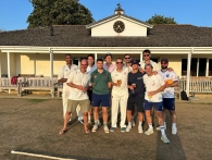 Sam Pougatch immediately set about the target putting on 60 odd at great speed. Someone must have drugged (our) umpire at drinks as he then proceeded to give two absolute shockers against Felix Tritton & Simon Hungin and at 142/6 the Chairman confesses he thought the target some way out of reach. Sam was still going strong having passed 50 and Ed Moore having none of the negativity, hammering a quick 18. They put on 42 and at 184/7 Ollie Simpson came in, his dad in the pavilion telling all and sundry a Granny double winning weekend was on if they kept their heads. Sam somehow escaped another absolute shocker from the umpire on 95 who reversed his original decision and with Simmo batting the best ever in Granny colours they got us home in the penultimate over, putting on 50, Simmo 20 not out and Sam finishing on 124. A great win, a very fair declaration from the Oxford Downs captain and obviously a genius decision from the Chairman to bowl first.